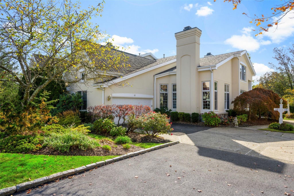Indulge in the ease of country club living at 12 Doral Greens Drive E Townhouse! This Extraordinary residence, within the esteemed Doral Greens community, provides an open, expansive and luxurious lifestyle offering the perfect balance of privacy, and easy living. Upon entering, the serene pond views immediately create a private and tranquil atmosphere. Your everyday life transforms into a perpetual vacation with a private pool, spa, tennis courts, clubhouse, and fitness center at your disposal. Sprawling deck with retractable awning, meticulously maintained landscaping, and lush gardens offer a picturesque backdrop. The townhouse boasts lofty ceilings and an open floor plan filled with natural light from floor-to-ceiling windows. The New custom designed Eat-In Chef’s Kitchen with a stone island and top of the line appliances, porcelain tiles, seamlessly connects to the family room, featuring a cozy fireplace and handsome built-ins. Host elegant dinners in the formal dining room or find solace in the beautiful living room featuring an additional fireplace and sliding glass doors to deck and amazing pond views. Two-car attached garage. The second floor showcases a large balcony with built-ins, two en-suite bedrooms with pond views, each with multiple walk-in closets. The large temperature controlled, storage loft/walk in closet completes the second floor. This special home boasts a brand new roof & gutters 6/24, assessment has been pre-paid. Freshly painted interior and a very convenient location! Experience seasons of serenity, presenting an exceptional opportunity for a discerning buyer. Don't miss the chance to make this magnificent property your own and embrace the best of Doral Greens living!