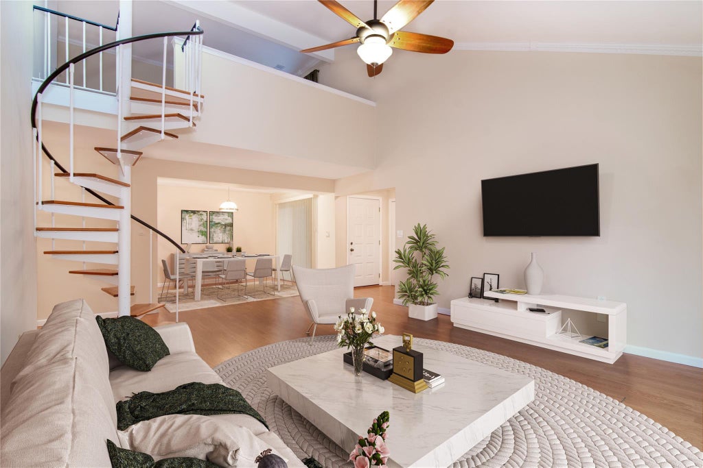 Listed as 2 bedroom lives like a 3 bedroom.! This stunning unit has all the advantages of a house; spacious, incredible storage, 2 private balconies, W/D, central AC, parking, plus 24-7 gated security. As you enter your private entrance through new front door; you will find a Lg. coat closet with sliding doors, plus a huge storage closet. Turn to find a LR with a soaring cathedral ceiling and new SGD to your private balcony surrounded by trees. The kitchen. with granite counters and SS appliances & breakfast bar is perfect. The dinning area has new SGD to balcony. The roomy primary bed with ensuite bath has 3 closets. The oversized 2nd bed has a double closet. In the hall we have another full bath and a closet. The hallway has the W/D contained in it's own area. Up the spiral stairs we find a huge loft for bed/den/office, ensuite bath, walk in closet and skylight. Fabulous storage is on this level also. The new windows and insulation plus new Anderson sliding glass doors keep your utility bills in check. Close to train, shop, dining, movies and major highways .In ground pool. PET friendly. Excellent condition throughout! Everything you want in your own house!