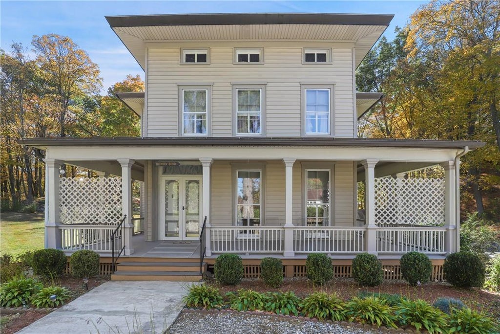 Hickory Bend. First time offered! Impressive Italianate Victorian circa 1900. Original builder's floorplan and lovingly maintained for five generations. Wrap around Porch to original Side Hall Entrance. Beautifully scaled main rooms with high ceilings. Fabulous period details throughout including wide plank floors, plaster walls and detailed moldings. Sun-filled Living Room with pocket doors to Family Room. Formal Dining Room. Spacious Country Kitchen. Second Floor with Three Bedrooms, Office and Sitting Room. Lower level with original Summer Kitchen with cooking hearth. Conveniently located two acres with gently rolling lawns, age-old trees and gorgeous flowering perennials. Detached Three-Car Garage. Part of the area’s rich past. Additional Information: HeatingFuel:Oil Below Ground,ParkingFeatures:3 Car Detached