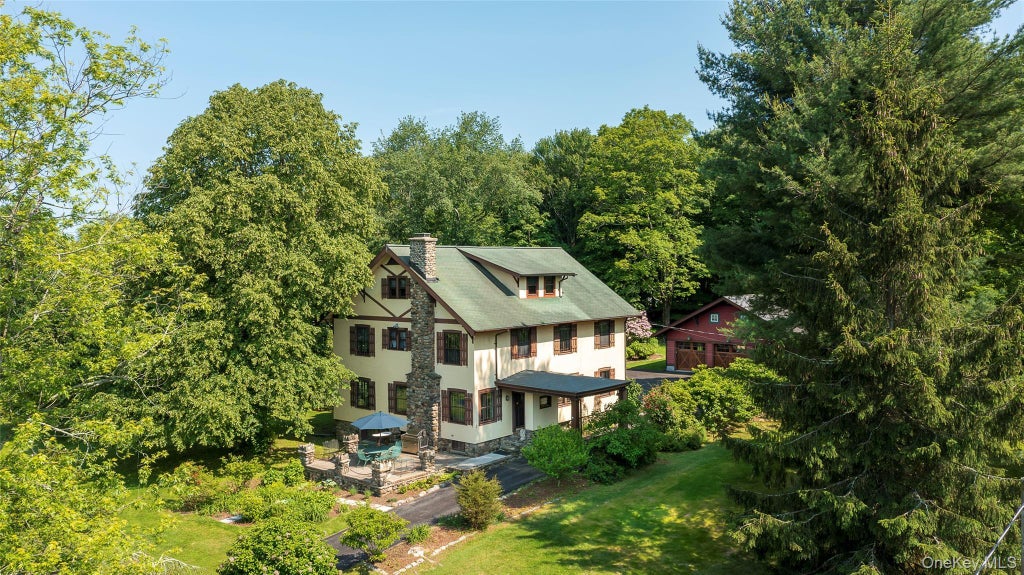 As one of the finest examples of cherished Arts & Crafts architecture, this elegant and meticulously maintained home seamlessly blends timeless architectural style with modern comfort. The beauty of the Arts and Crafts movement resonates deeply with those seeking a character-rich residence. Tucked away on a quiet road minutes from picturesque Katonah village this home offers the perfect balance of privacy and convenience. Set on beautifully landscaped level acres with mature trees and lush gardens, the driveway beckons you toward a charming porte-cochere entrance reminiscent of carriage days. Inside; sunlight, warm woods, rich textiles and vintage furnishings create a collected, lived-in elegance. Period details shine, from beautiful windows, hand-cut trim and custom millwork to hand-painted wallpaper and antique light fixtures. The first floor offers a thoughtful flow of inviting spaces. A warm living room with rich oak flooring and a native stone fireplace opens to an elegant dining room. The chef’s center-island kitchen features a commercial gas range, stainless steel appliances, and granite counters. A cozy family den and a plant-friendly solarium complete the main level. Upstairs, the second level unfolds in a classic four-square layout. The primary suite includes an en-suite bath and an adjoining bedroom. Three additional bedrooms and an office. The finished third level, accessed by a beautifully designed floating staircase, includes a bedroom with en-suite bath and two large rooms suitable for home office, playroom or artist studio. Outbuildings include a charming gardener’s shed and a car lovers custom built four-car heated garage with a second-story loft and private entrance. Just off the kitchen, a fenced patio and vegetable garden create a picturesque space for alfresco dining. The front terrace is the perfect spot for evening gatherings or a quiet glass of wine. This one-of-a-kind property embodies timeless comfort just minutes to Metro North, shopping, restaurants and major highways.